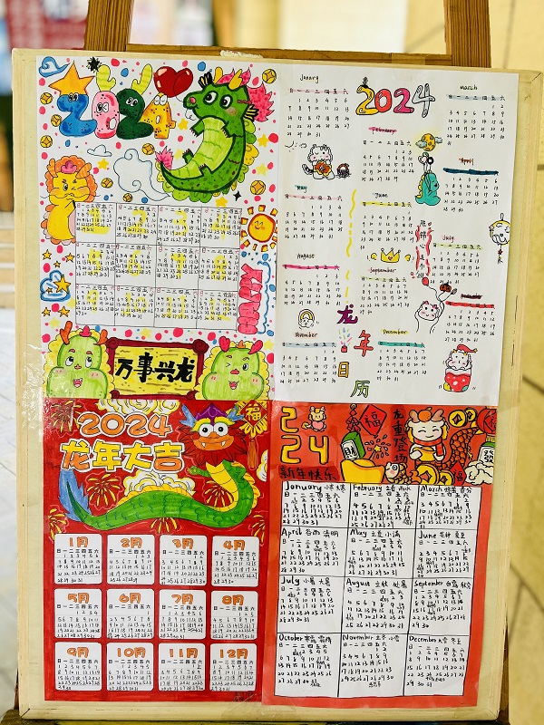 龙年日历设计展是适应周的“重头戏”。探究二十四节气、认识年月日、巧记英语单词、绘制天气符号等元素在日历中巧妙结合。小伙伴们富有童真童趣的创意,让大家连连称赞,大饱眼福。借助一本小小的日历,体会传统文化的风雅与智慧,让学习成为一场快乐的旅程,为翩翩而至的龙年,增添新春的美好祝福与祈愿!