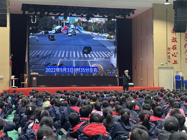 宣传活动中,交警叔叔结合二年级学生年龄特点和校园周边情况,深入浅出地讲解了日常生活中的交通安全常识。强调了过马路、乘坐交通工具时的注意事项,通过典型事故案例,让同学们深刻理解并且认识到乘车不系安全带、不佩戴安全头盔、随意横穿马路、闯红灯等行为的严重危害和后果。
