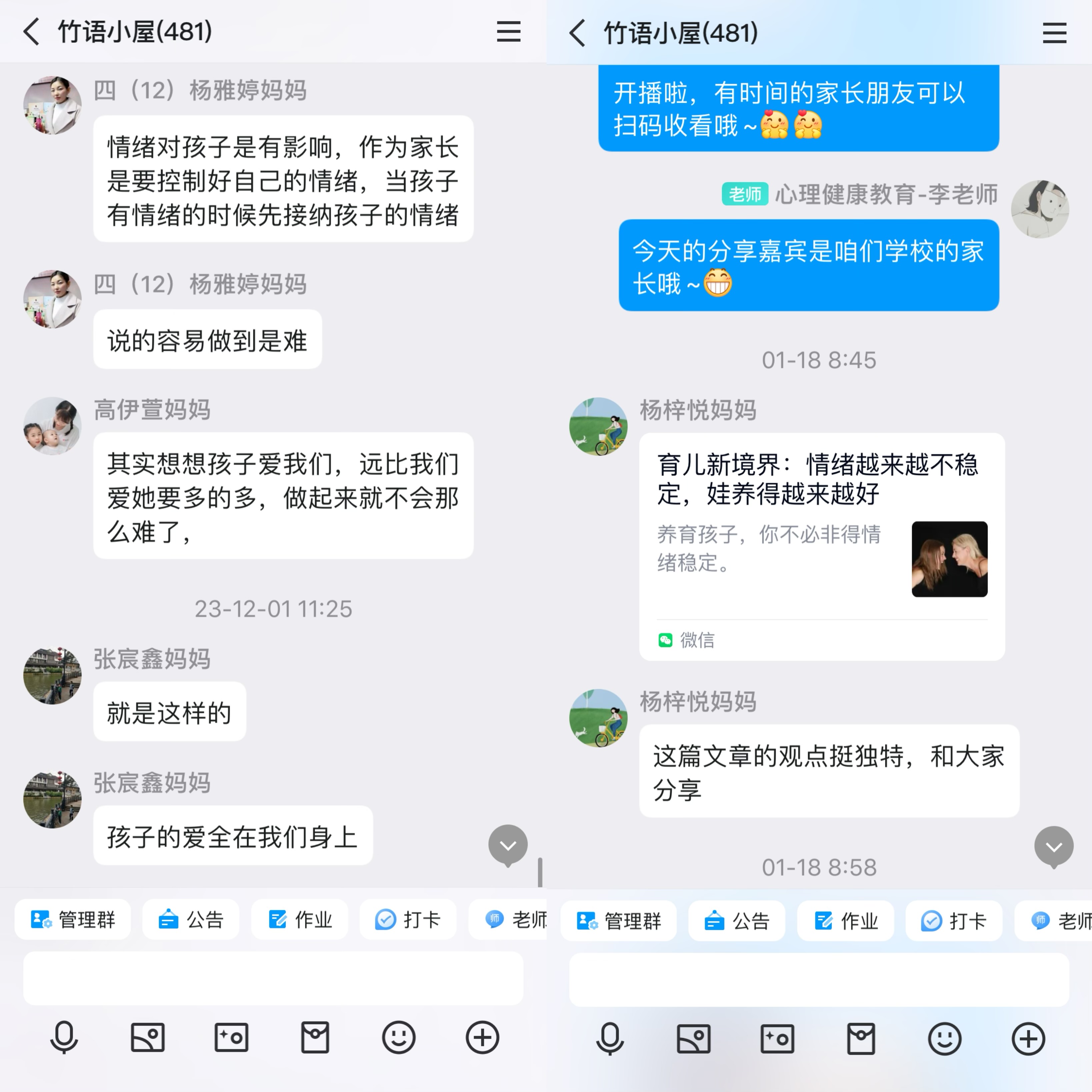 家校共育周,我们在行动,孩子的成长离不开家长与老师共同的指导与陪伴。在竹溪小学,我们不仅仅关注学业,更是用心呵护每一个孩子的心理健康。接下来的日子,我们继续携手共进,用爱与关怀,为每个孩子的成长之路增添一抹温馨的色彩!