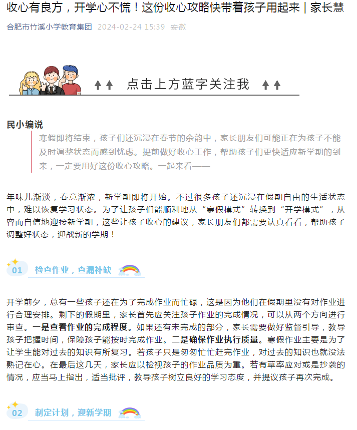 此外,在家长群和学校的学习公众号里,也经常能看到我们编辑、转发能够帮助家长更快使孩子收心的小技巧!
