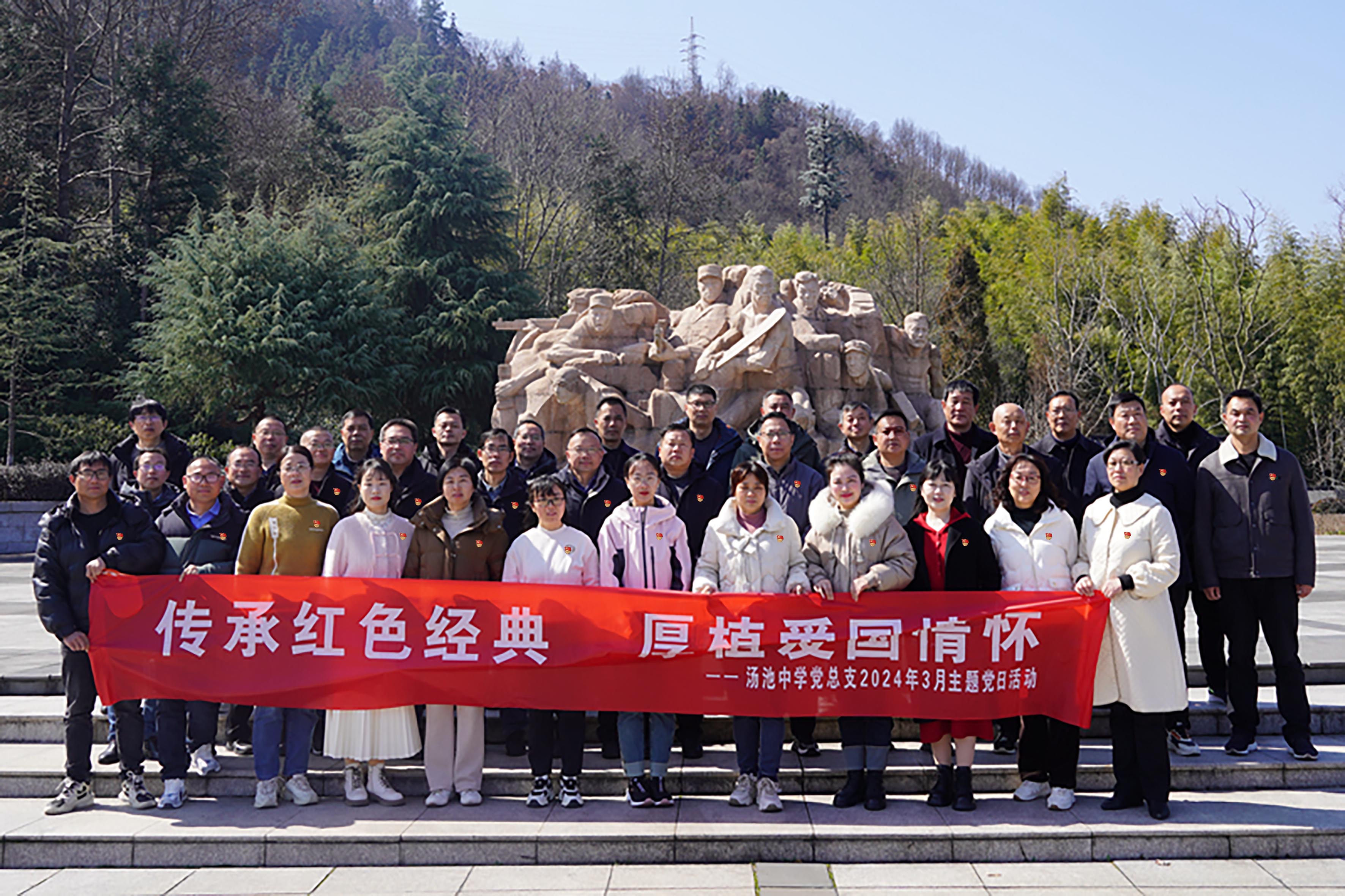 汤池中学党总支书记朱庆宏在讲话中指出,先烈们壮烈的故事、英雄的事迹深深地震撼我们、鼓舞着我们,我们要踏寻英雄的足迹,传承红色的精神,将更多精力投入到“美好汤中”的建设之中,为办人民满意的教育做出我们应有的贡献。