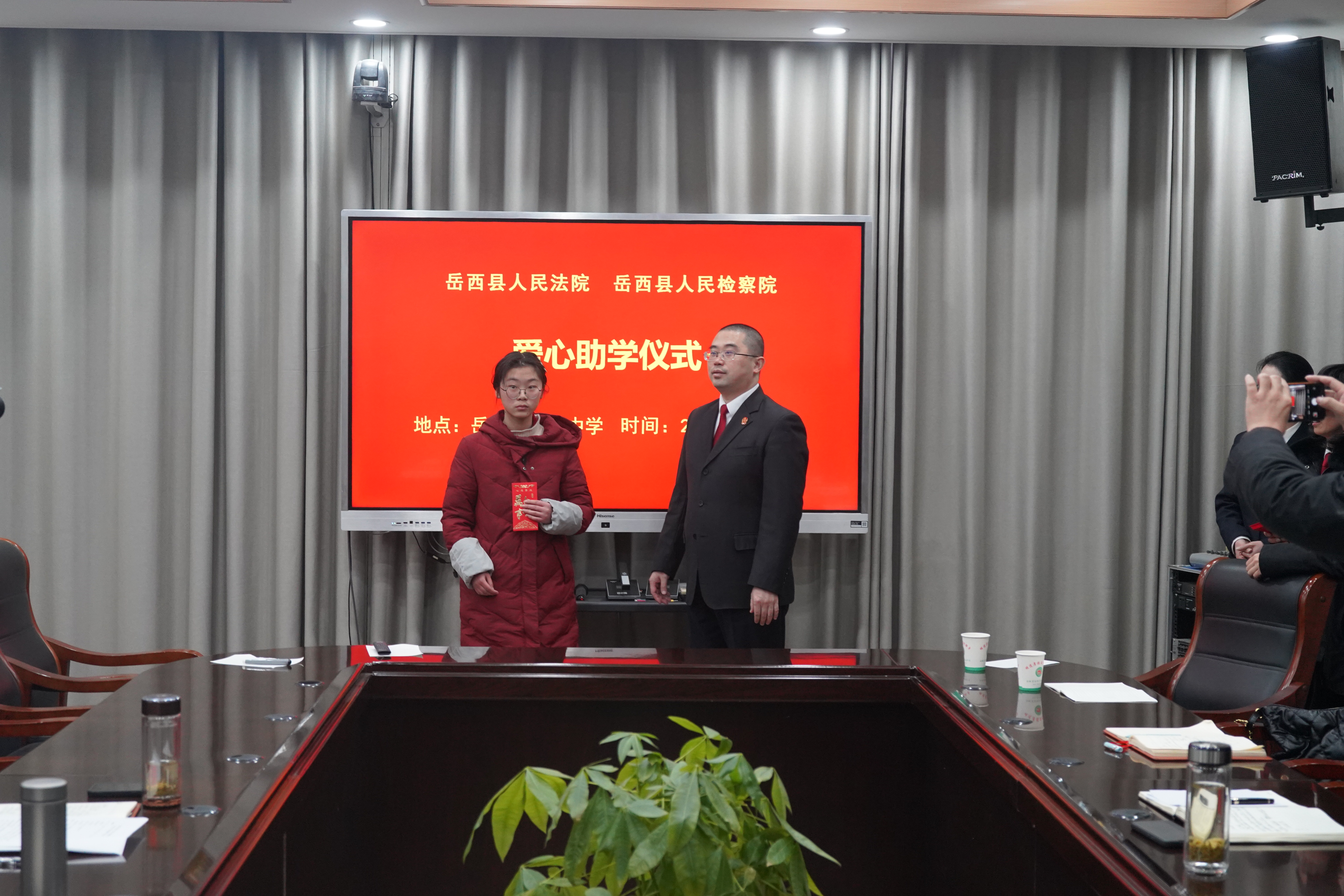 在汤池中学负责人和受助学生代表发言后,徐杨勉励受助学子保持勇于拼搏的精神和吃苦耐劳的品质,聚焦学习主业,学会自我约束和自我管理,不断提升自身能力,以优异的成绩回报社会的关心关爱。县法院将继续完善法官“一对一”结对帮扶机制,长期关注家庭困难学生,定期回访并开展心理关怀和普法教育,护航学生健康快乐成长。