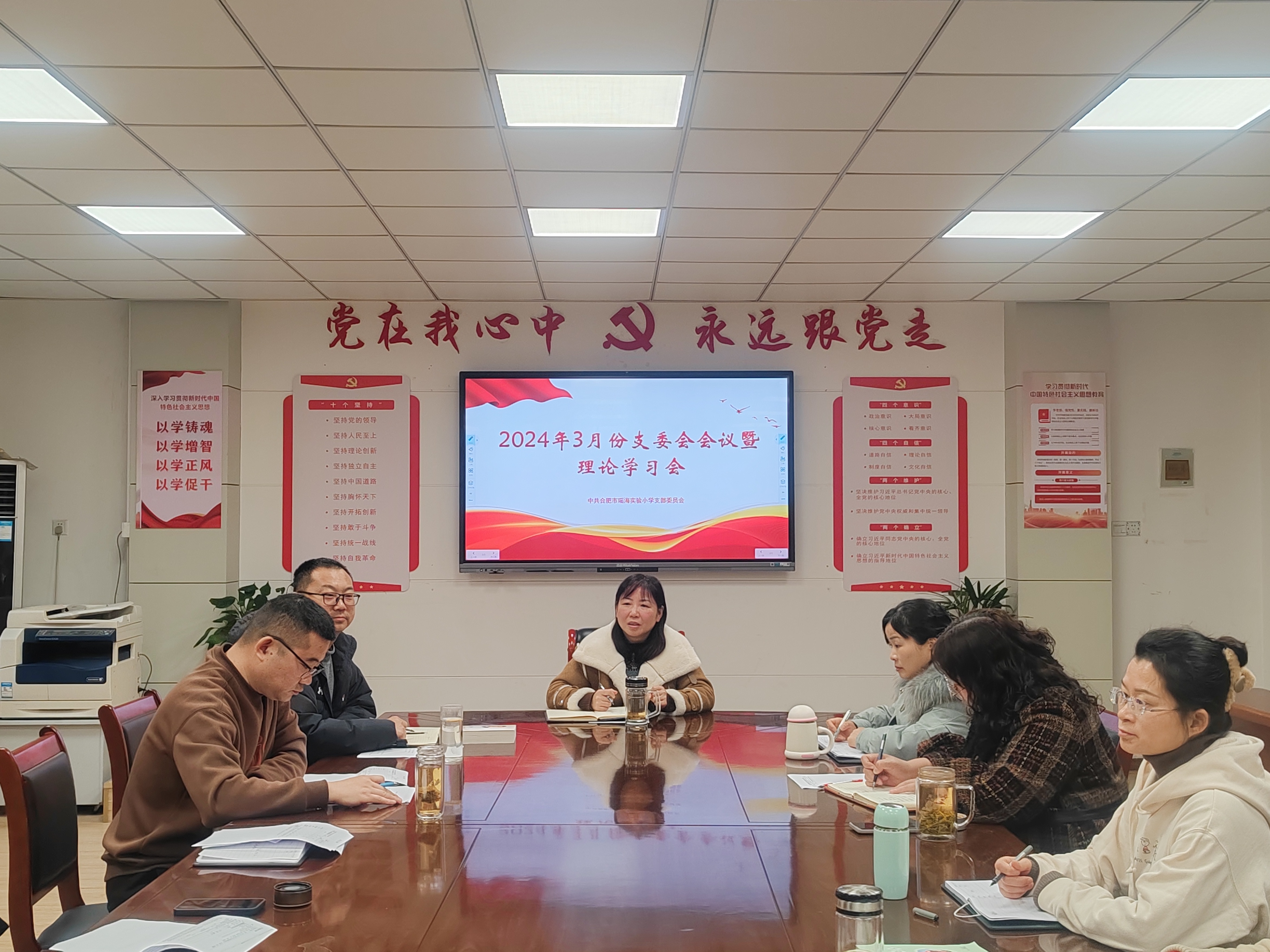 3月4日上午,合肥市瑶海实验小学党支部在党员活动室召开2024年3月份支委会会议暨理论学习会,会议由党支部书记、校长夏春梅主持,支委班子成员出席会议。