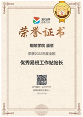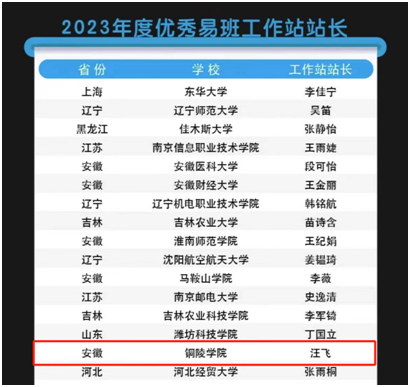 近日,教育部易班发展中心公布了2023年度全国易班共建优秀名单,铜陵学院易班学生工作站站长、建筑工程学院2020级工程造价2班汪飞同学获2023年度“全国优秀易班工作站站长”荣誉称号,这也是该校自2021年以来连续三年获得此项荣誉。