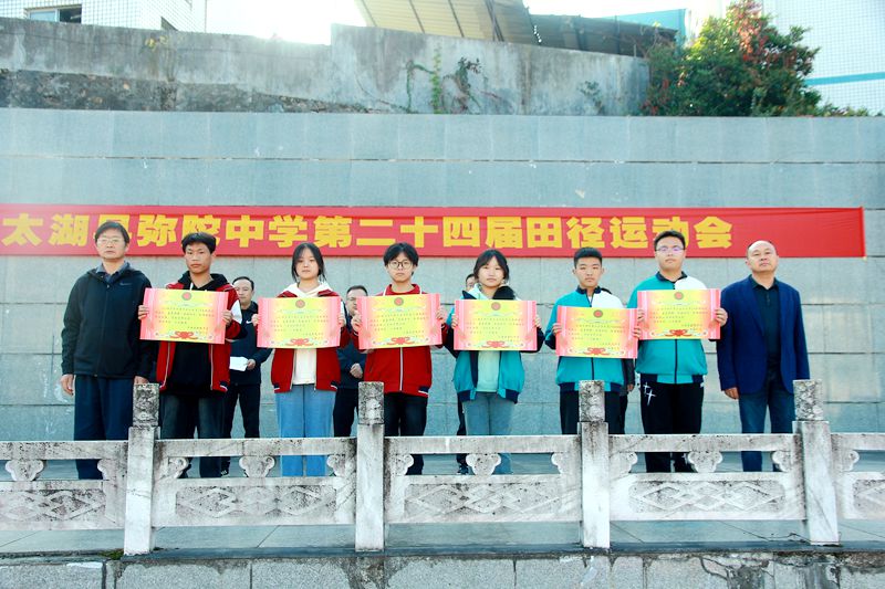 秋高气爽,艳阳高照。10月31日-11月1日,太湖县弥陀中学第二十四届田径运动会在学校运动场举行。11月6日上午大课间,本届运动会组委会对团体获奖代表队进行了颁奖。