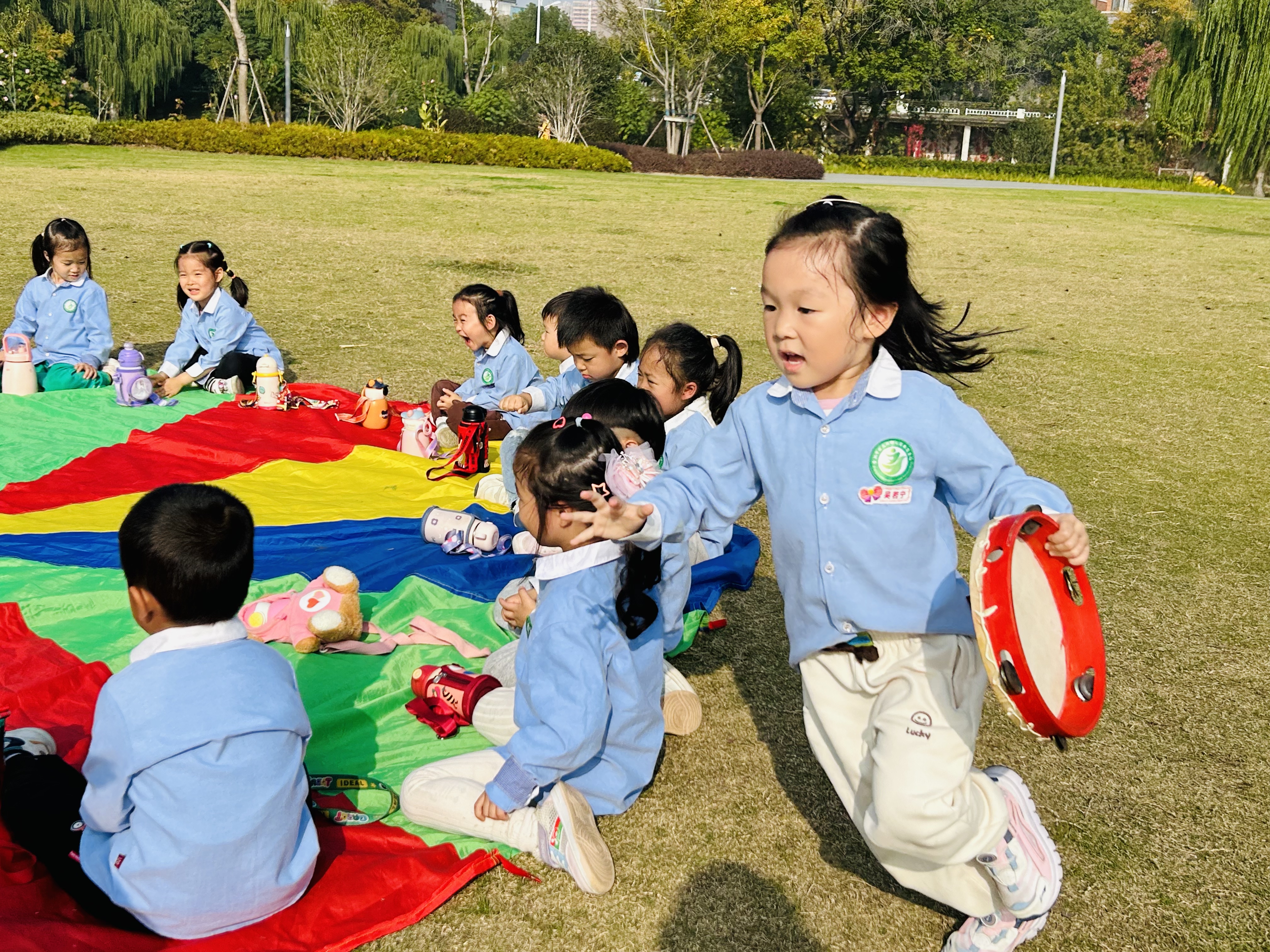 迎着明媚的阳光,伴着徐徐的微风,小朋友们带着激动的心情出发啦!在这场热情洋溢的活动中,老师们准备了丰富的体育游戏。本次社区活动的项目内容以传统游戏和趣味游戏为主,包括丢手绢、击鼓传花、跨栏、趣味跳圈等。这些好玩的游戏不仅能锻炼幼儿上下肢力量、身体协调能力和平衡能力,还能增加幼儿肌肉力量、弹跳能力,促进心肺功能。现场掌声、笑声、喝彩声此起彼伏,展现出团结合作、互帮互助、和谐向上的体育精神。既比拼速度和体力,又博弈智慧和技巧,精彩纷呈,非常激烈。现在让我们来回顾一下吧!