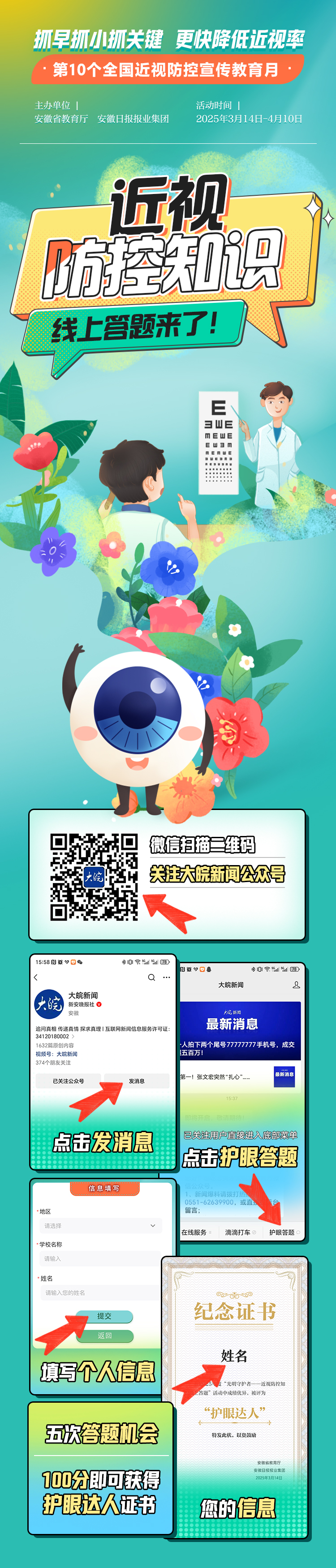 由安徽省教育厅和安徽日报报业集团联合打造的“光明守护者——近视防控知识线上答题”活动,已在大皖新闻微信公众号上线。