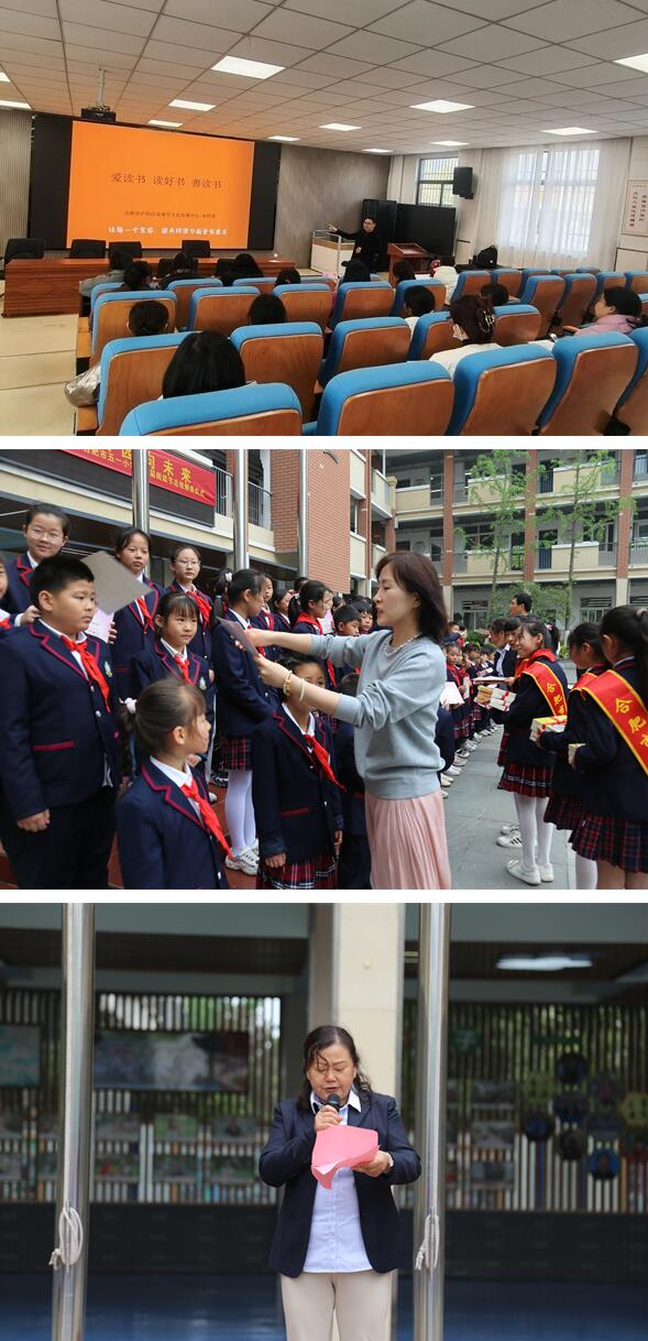 家校社协同推进。五一小学通过“家长阅读领航员”培训,“阅读班级”建设,带动学校阅读向家庭阅读辐射,从而实现孩子“从被动阅读转向主动动索”。同时,4月23 日,在世界读书日这天,五一小学读书节颁奖典礼上,合肥润宜家集团的陶主任,也为五一的孩子们送来了精美的图书,奖励给在本次图书节活动中获得特等奖的孩子们,并勉励孩子们,多读书、读好书,用书中的美德指导自己的行动,成为对社会有用的人。
