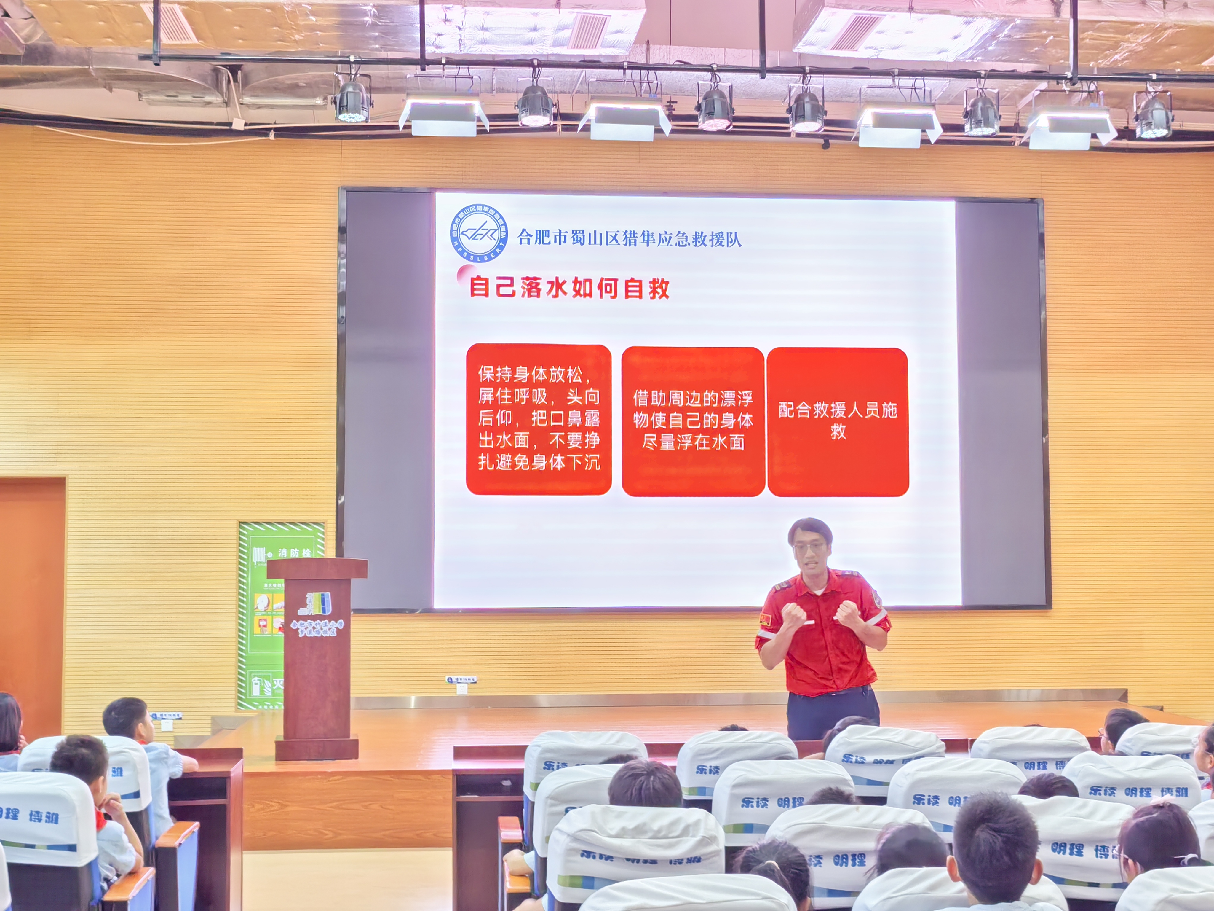 为增强学生防溺水安全意识,提高自我保护能力,预防溺水事故发生,5月29日,合肥市竹溪小学梦溪路校区特邀合肥市蜀山区鹰隼应急救援队安全教育专家梅小虎老师,为全校师生开展了一场生动实用的防溺水安全教育讲座。