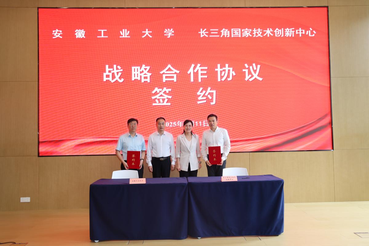 8月11日,安徽工业大学与长三角国家技术创新中心(以下简称“长三角国创中心”)战略合作协议签约仪式在南京举行。校党委副书记、校长曾杰,校党委常委、副校长张世宏,长三角国创中心副主任、江苏省产业技术研究院党委书记黄丽侠,江苏省产业技术研究院首席专家罗本进等出席。长三角国创中心工程教育与国内合作部、区域合作部、业务管理与服务部、战略规划部等部门负责人,安徽工业大学科研处、研究生院、相关工科学院及教育部重点实验室负责人参加。