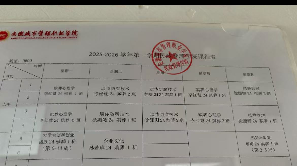 9月18日上午11时30分,随着下课铃声的响起,该校民政学院2024级现代殡葬技术与管理专业的同学们结束了上午“殡葬心理学”专业课的学习。“为何会选择殡葬专业”“殡葬专业学什么”“以后的就业方向有哪些”……对于这些疑问,大皖新闻记者采访了多位老师和同学。2024级现代殡葬技术与管理专业2班的葛清表示,自己性格内向,不擅长社交,以后的就业偏向防腐整容领域,立志成为一名入殓师,“这个岗位不用过多与人周旋,能让我沉下心做好手头的事”;同班的李莘雅则与葛清性格相反,外向大方的她更倾向成为殡仪礼仪师,“面对逝者家属时,我有信心不胆怯,用专业的礼仪服务帮他们平复情绪,送逝者最后一程”。
