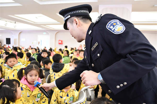 情景互动环节成为安全知识的“活课堂”。在“我会保护自己”模拟游戏中,民警扮演“陌生的熊叔叔”,通过防拐骗测试生动讲解“不吃陌生人食物”“不跟陌生人走”等安全准则;在“商场走失”情景中,孩子们学会了“原地等待”“寻找穿制服人员求助”等方法。趣味问答环节,孩子们踊跃抢答,在欢声笑语中巩固了安全知识。