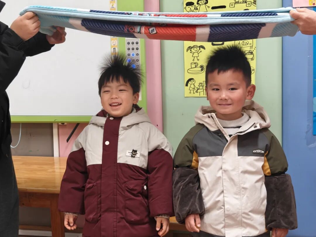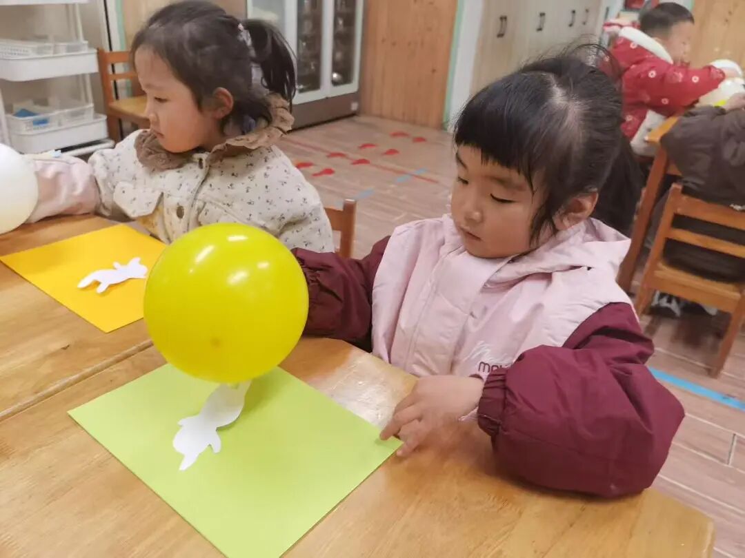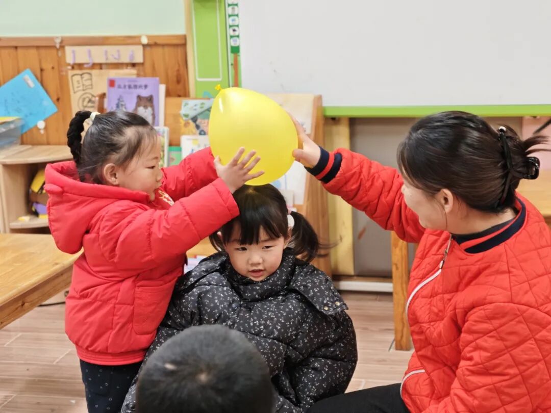 活动伊始,小班组以一场别开生面的科学实验《静电真有趣》吸引了孩子们的注意。老师们精心准备了毛毯、气球等日常物品,引导孩子们通过摩擦产生静电,亲身体验了“头发竖起来”和“会跳舞的兔子”等有趣现象。孩子们在操作中惊叹于静电的神奇,对冬季的科学现象产生了浓厚的兴趣。