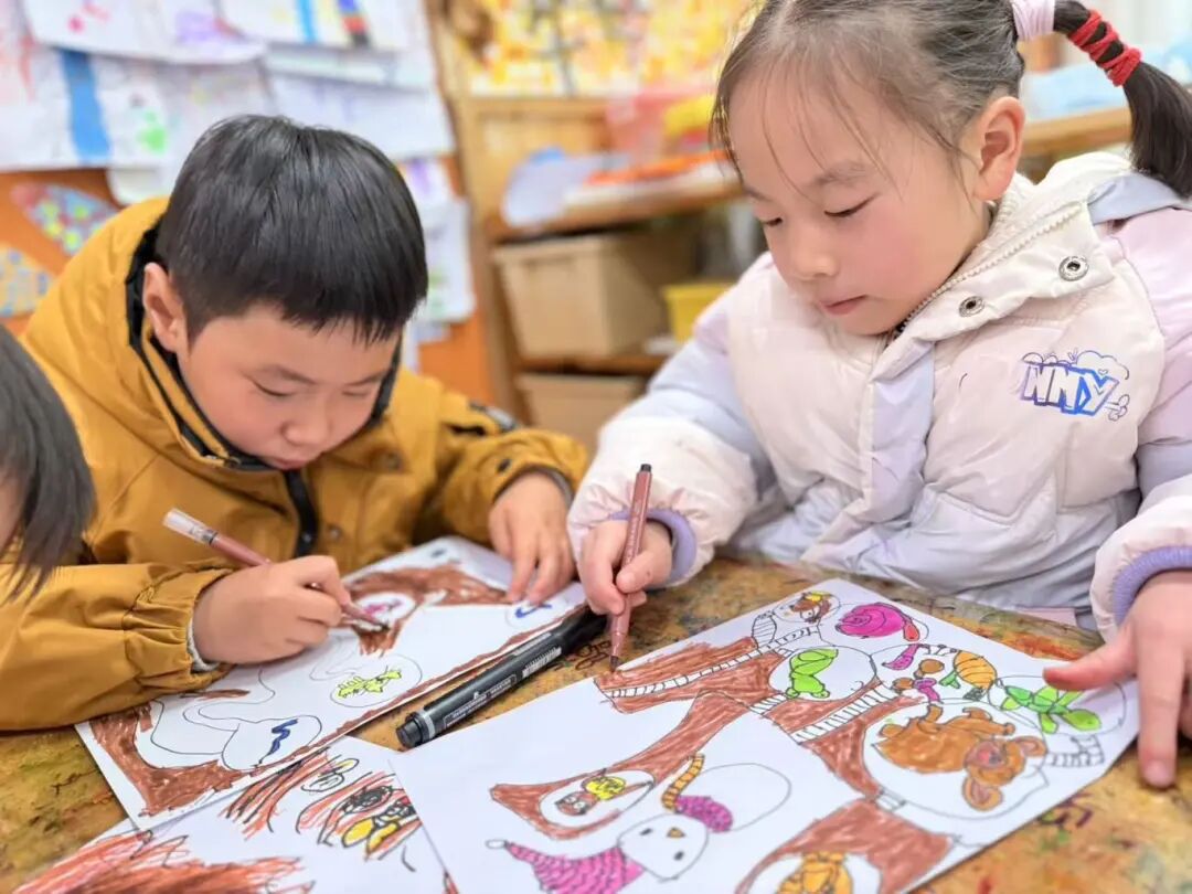 中班组则通过《创意绘画:动物过冬方式》活动,让孩子们在绘画中了解动物的过冬方式。活动前,孩子们观看了动画短片,对青蛙冬眠、大雁迁徙等动物行为有了直观地认识。随后,他们拿起画笔,将自己喜欢的动物过冬方式跃然纸上,一幅幅充满童趣的作品展现了孩子们对冬季动物生活的想象和理解。