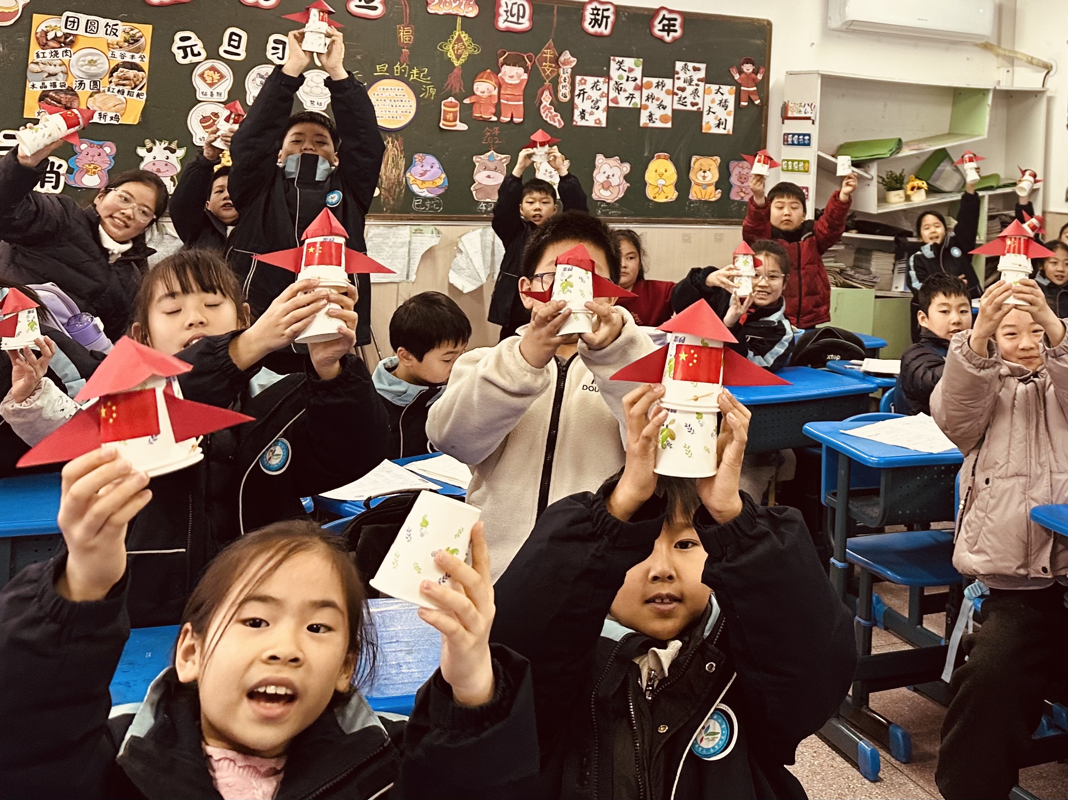 四(3)班家长微课堂欢乐开课,胡夏同学的家长带着同学们玩转纸杯火箭手工。家长一步步演示裁剪纸杯做箭锥、拼接箭体、粘贴尾翼、安装吸管发射装置;同学们跟着剪剪贴贴,忙得不亦乐乎。当一只只五彩的纸杯火箭被吹着飞向空中时,教室里的欢呼声和笑声此起彼伏。这场趣味满满的手工课,让孩子们在动手实践里收获满满快乐。