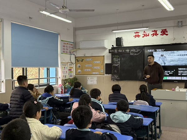 四(4)班王希赫爸爸以电影为主题,为同学们带来了一场精彩分享。课堂上,他告诉大家电影是“会动的梦想”,既能开阔眼界,也能滋养心灵。同时,他还详细介绍了一部电影从创意、拍摄到后期制作的全过程。同学们听得认真,眼神里满是对电影世界的向往与好奇。最后,他鼓励同学们多看优秀电影,在观影中思考、学习,感受艺术的力量。此次活动让孩子们近距离领略了光影艺术的魅力,收获满满。