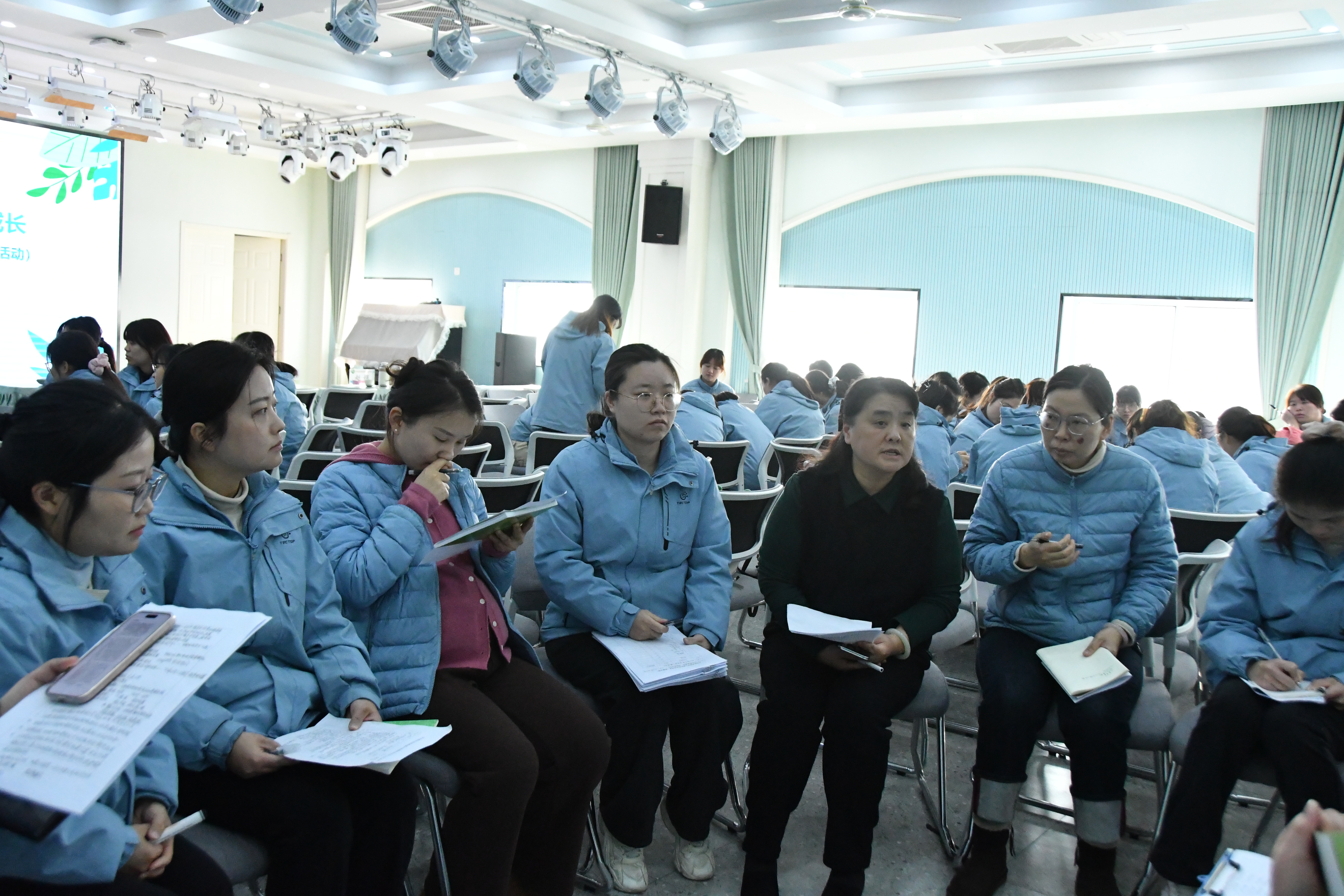 随后教师迅速分组研讨,展开聚焦实效的心得分享与思想碰撞。研讨后,各园教师代表依次发言并达成共识:注重课程实施的过程性与开放性,在尊重幼儿兴趣与节奏的基础上,提升教师的课程生成与回应能力。通过持续的教学反思与实践优化,真正让课程成为支持幼儿主动探索、全面成长的活力源泉。