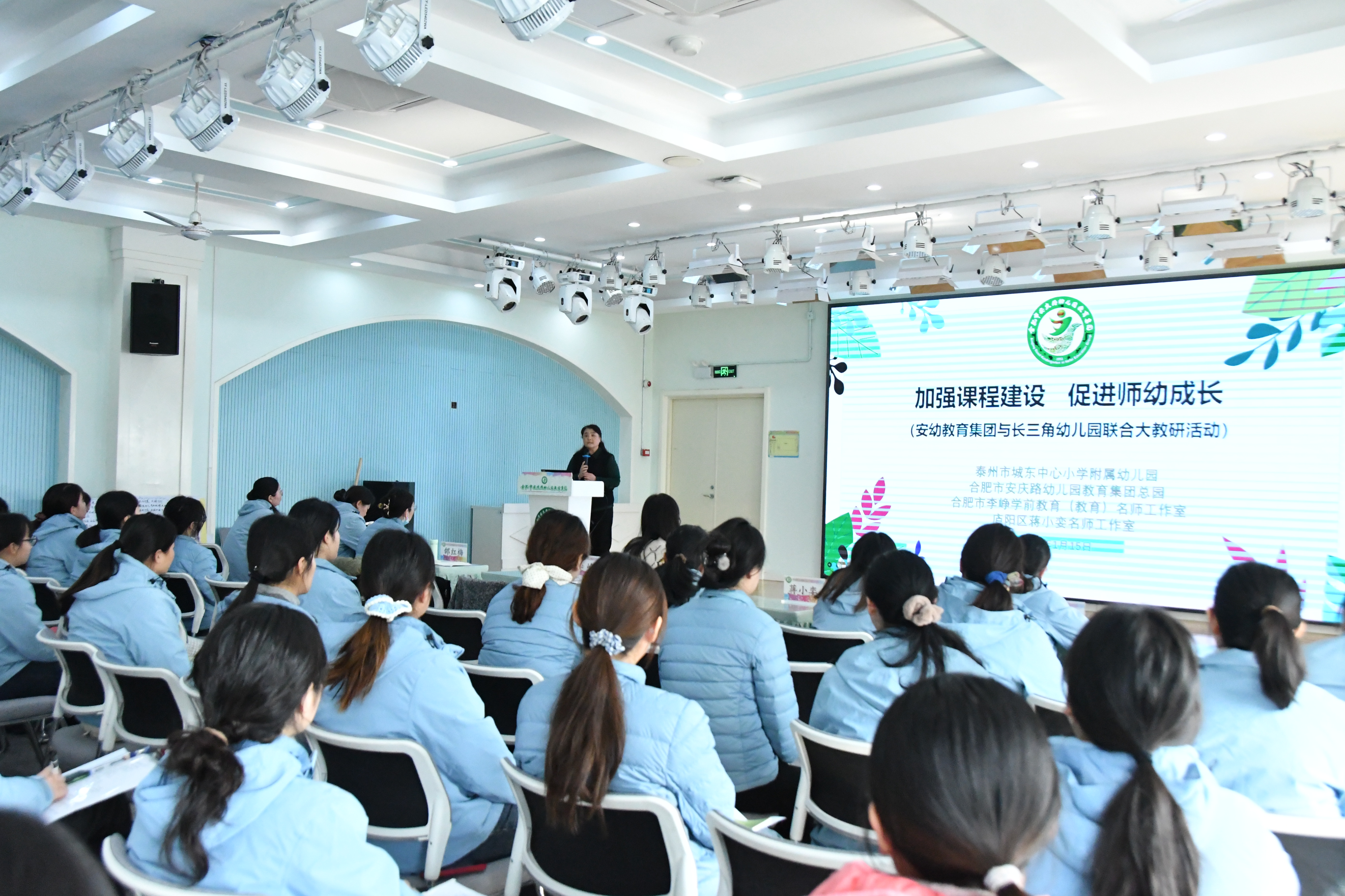 为深化幼儿园课程建设、优化周课程设置的科学性与实效性,破解教师课程实施困惑,2026年1月15日上午,合肥市安庆路幼儿园教育集团在李峥总园长统筹部署下,联合长三角幼儿园开展以“加强课程建设,促进师幼成长”为主题的联合大教研活动。安幼教育集团李峥总园长、泰州市城东附幼副园长姚雅雯、集团各园保教主任及不带班教师齐聚一堂,通过专题汇报、互动研讨、专家点评等多元形式,构建了一个立足实践、视野开阔、启发性强的专业研讨场域,为跨区域学前教育协作与课程创新注入了强劲动能。