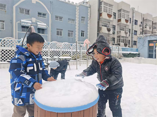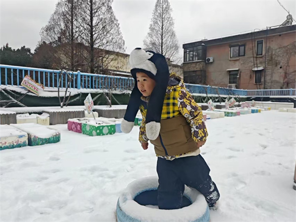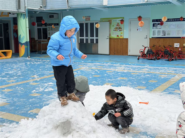 大寒恰逢瑞雪,园里的操场瞬间成了孩子们的欢乐场。孩子们穿着厚厚的棉衣、戴着可爱的手套,在松软的雪地里奔跑嬉戏。他们有的团起雪球互相追逐,有的蹲在地上堆起憨态可掬的雪人,还有的小心翼翼地踩出一串串歪歪扭扭的脚印。银铃般的笑声混着雪花飞扬,孩子们的小脸冻得通红,却满是兴奋与雀跃。这场不期而遇的大雪,让大寒节气多了一份灵动的快乐,也为孩子们的冬日记忆增添了一抹晶莹的亮色。