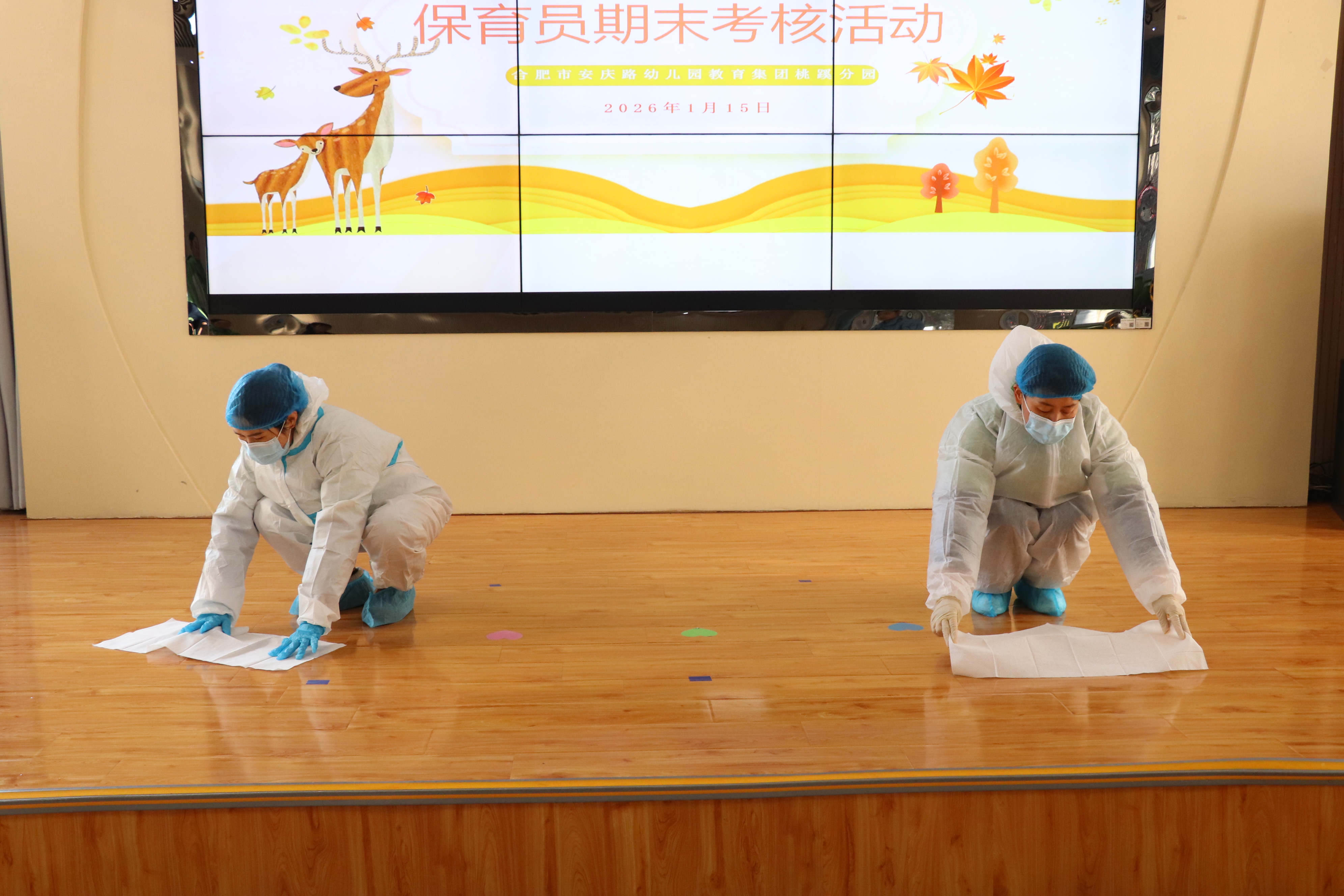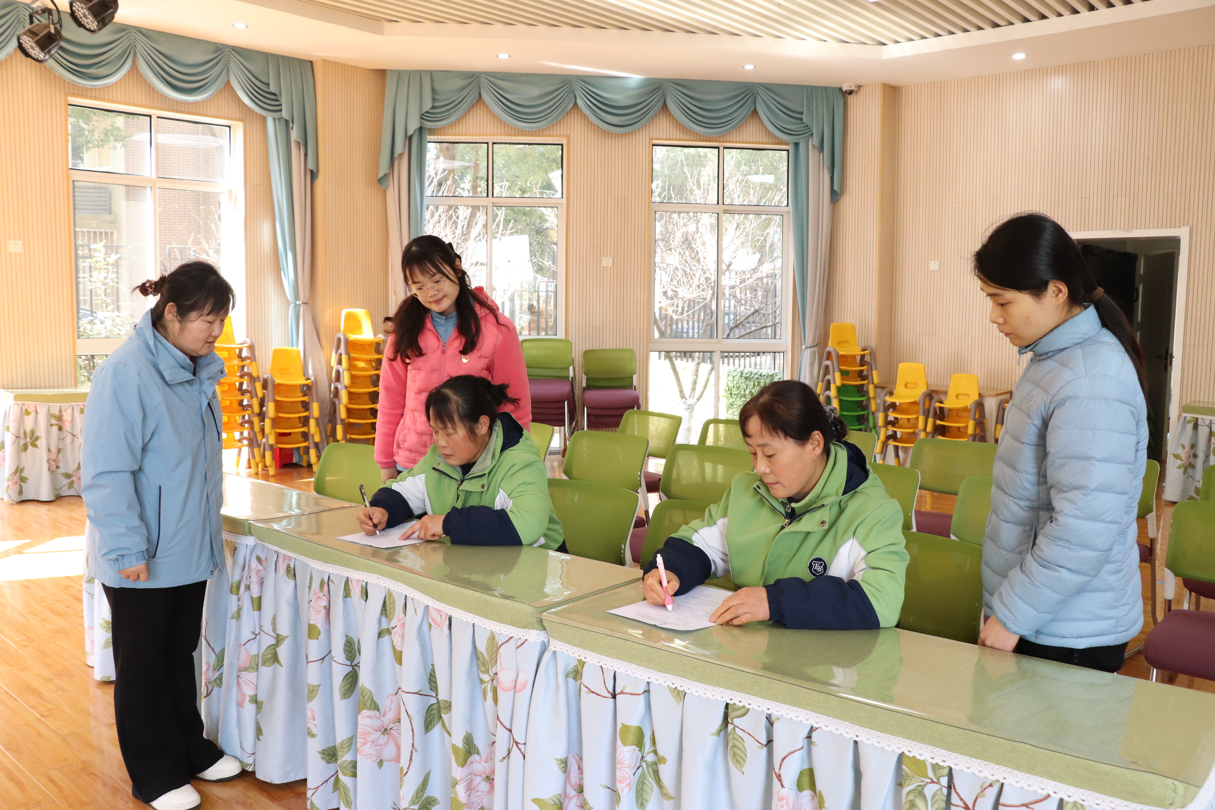 为持续深化党建引领育人实践,筑牢幼儿园后勤保障体系,全面提升保育员与食堂工作人员的专业素养与服务能力,搭建“以考促学、以赛促优”的党建赋能平台。2026年1月15日,在李峥总园长的统筹部署下,合肥市安庆路幼儿园教育集团桃蹊分园组织开展2025年秋季学期保育员及食堂工作人员期末专项考核活动。安幼桃蹊分园执行负责陶园园、后勤负责王亚南、保健老师兼食品安全员胡迎年担任评委,全程参与监督与评审,确保考核过程规范有序、公平公正,切实以党建“红色引擎”驱动后勤服务提质增效。