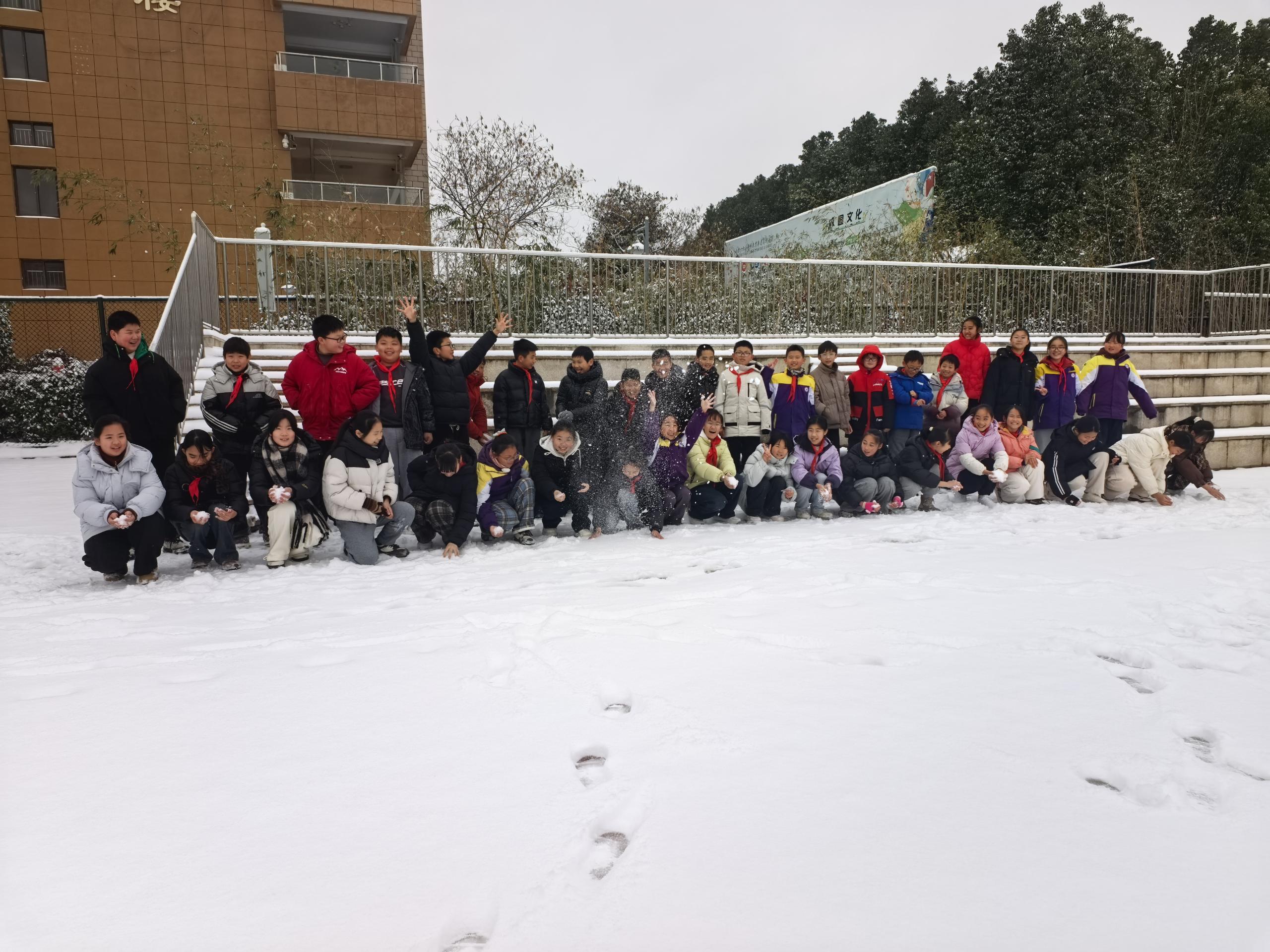 雪后的校园里,草坪、灌木都披上了洁白的盛装,松软的积雪铺满了小径与操场。学生们戴着鲜艳的红领巾,裹着厚实的冬装,在老师的陪伴下,兴奋地投入到玩雪活动中。有的同学在林间小径奔跑追逐,扬起细碎的雪沫;有的蹲在地上团起雪球,准备一场欢乐的雪仗;还有的张开双臂,让雪花落在掌心,感受冬日的清凉。在集体合影时,大家的笑容比阳光还要灿烂,为寂静的冬日校园增添了勃勃生机。