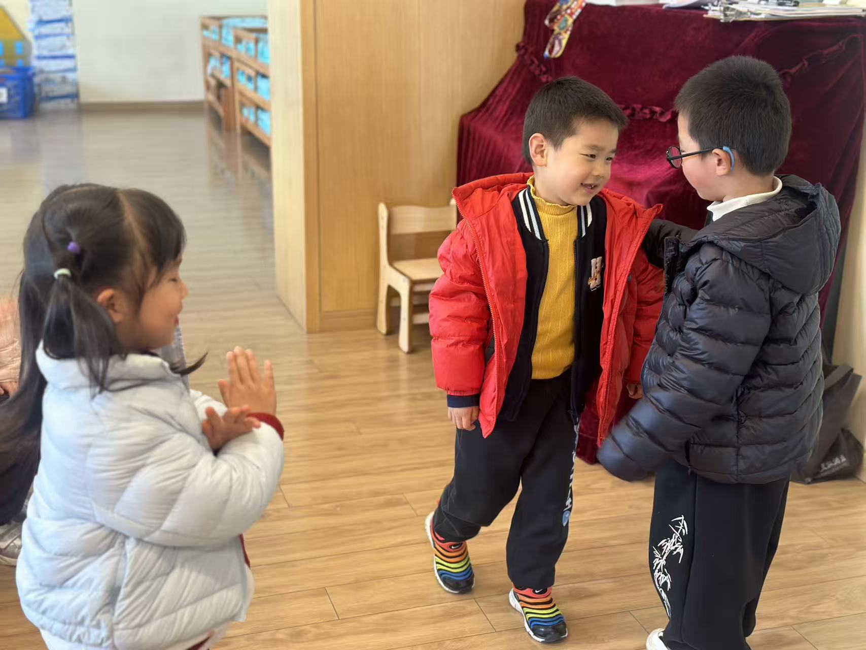 中班幼儿以情景演练、教师细致讲解为主要形式,聚焦人际交往与游戏安全开展教育活动。在防欺凌教育中,老师通过模拟情景、现场互动,帮助幼儿清晰认识什么是欺凌行为,引导孩子们学会正确表达自身情绪,勇敢对不友好行为说“不”,并牢记受到困扰时第一时间向老师求助。同时,各班结合幼儿一日活动,开展游戏安全专题教育,通过实景演练、示范讲解,让幼儿掌握游戏中的安全常识,学会有序玩耍、友好合作,有效预防游戏中推挤、磕碰等意外事故发生,提升同伴间安全交往与自我保护能力。