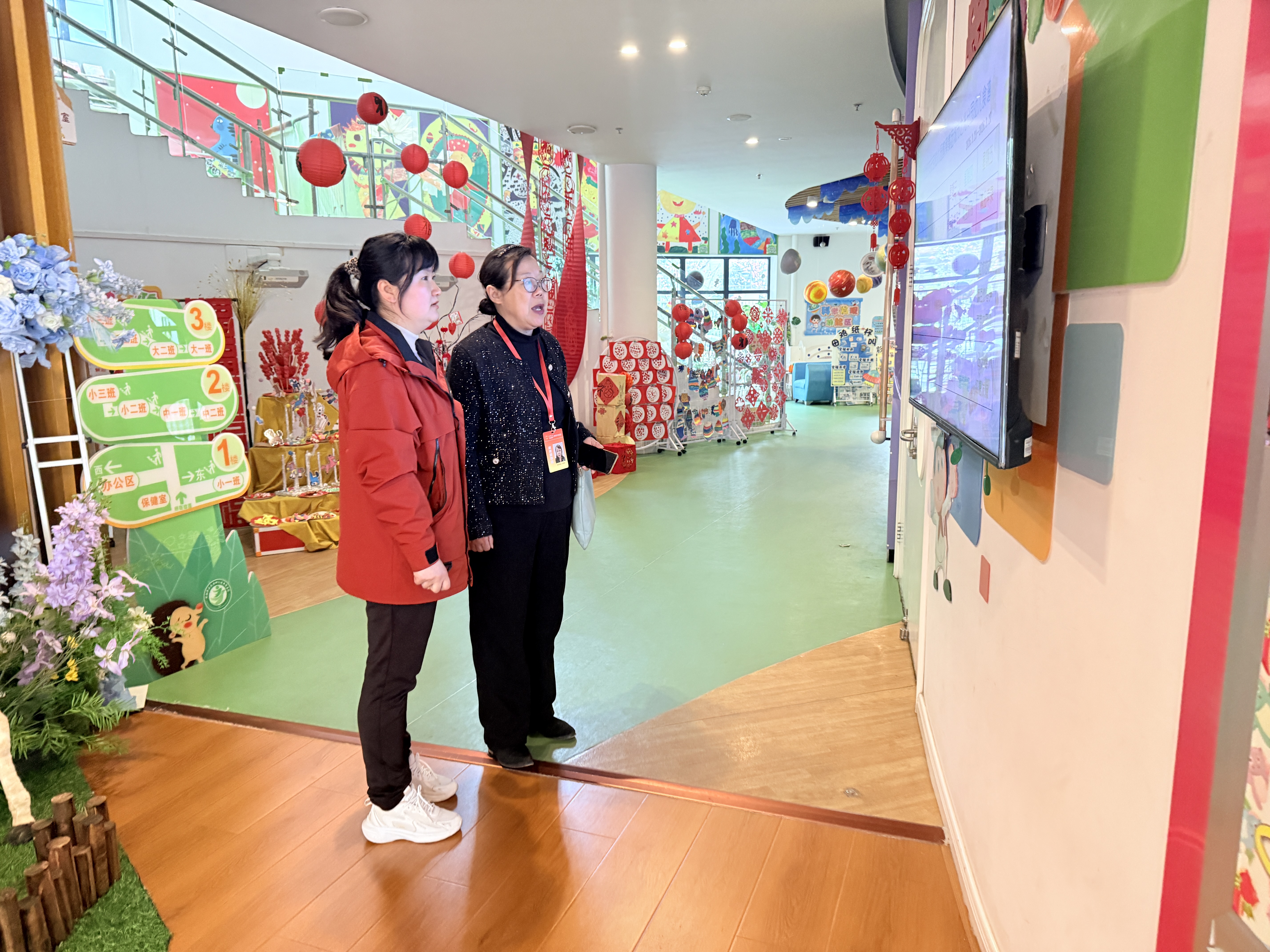 园区自然角的绿植生机勃勃,建构区的材料丰富多样,处处彰显着“以幼儿为本”的教育理念。督学对环境创设中“教育性、趣味性、互动性”的有机融合给予充分肯定,同时也针对环境资源的进一步优化提出具体建议,强调要让每一处环境都成为无声的课程,助力幼儿全面发展。