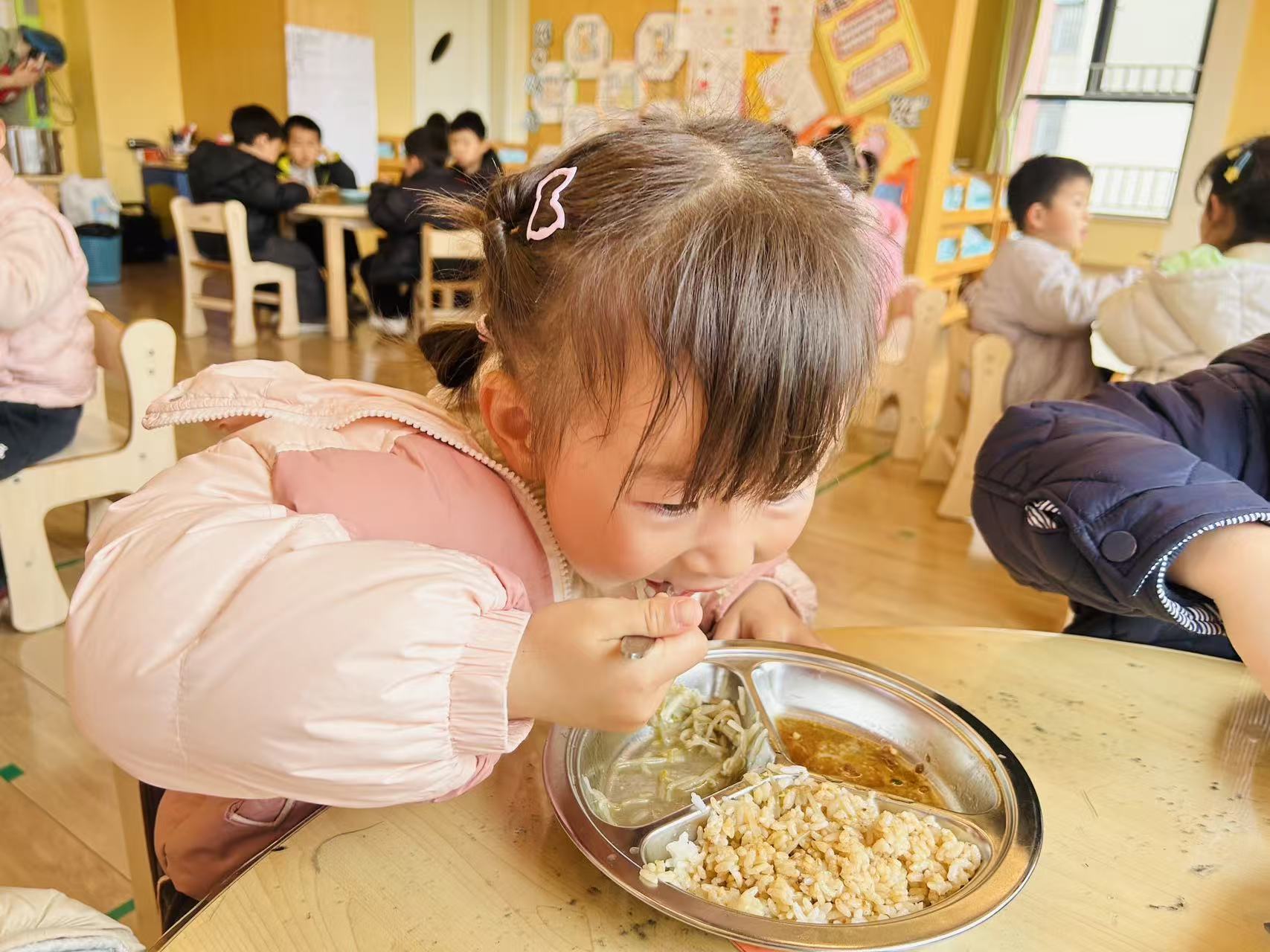 活动最后,春日的仪式感延续到了午餐时光。幼儿园的厨房里飘来阵阵清香,原来是食堂的阿姨们为全园的小朋友准备了新鲜的时令“春菜”。一道道用春天食材烹制的美味佳肴被端上餐桌。孩子们大快朵颐,品尝着大自然的馈赠。一口“春味”入喉,不仅吃进了新鲜与营养,更将整个春天的味道满满当当地留在了心间。
