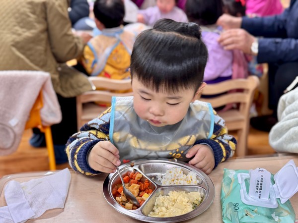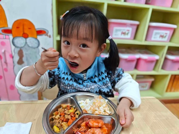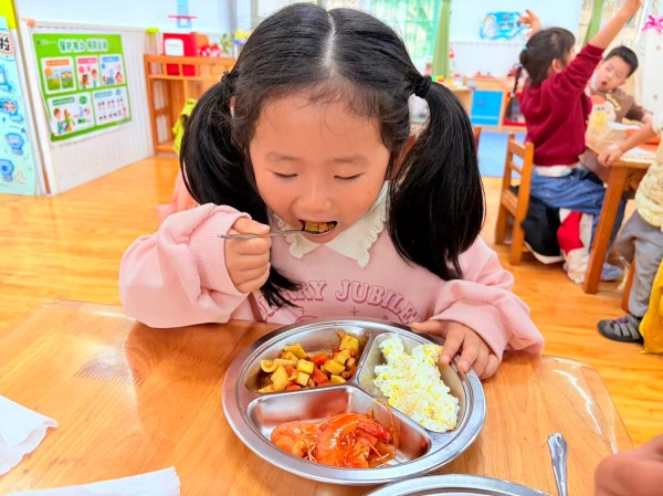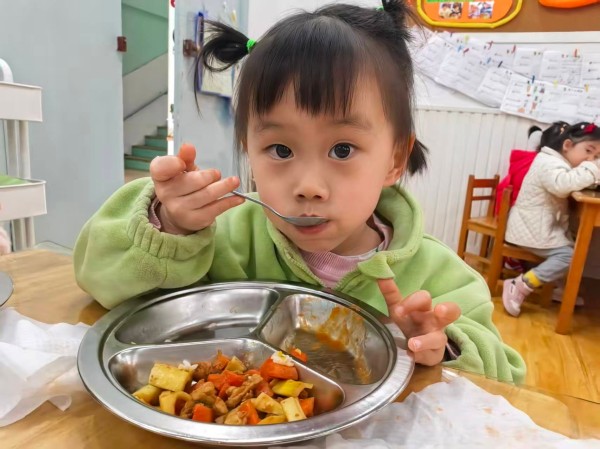 幼儿午餐环节同样备受家长关注。在老师的引导下,孩子们有序地进行盥洗、排队领餐,营养均衡的饭菜让家长们赞不绝口。用餐时,小朋友们坐姿端正,安静就餐,孩子熟练地使用勺子大口吃饭。家长们看着孩子的表现,眼中满是欣慰与自豪,纷纷表示幼儿园的科学膳食管理与悉心生活照料让他们非常放心。