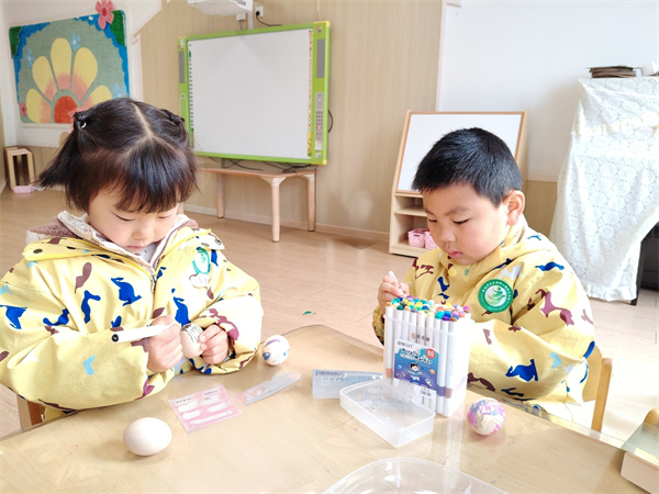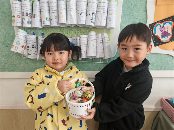 “春分到,蛋儿俏”,春分竖蛋是千年传统民俗,中班孩子们开展了“春分立蛋·好运连连”趣味挑战。老师用春分猜谜儿歌点燃孩子们的热情,大家拿起水彩笔,发挥想象为鸡蛋绘制春日图案,锻炼手部精细动作。老师讲解立蛋技巧,并鼓励孩子们大胆尝试、不怕失败。孩子们小心翼翼地尝试立蛋,有的一次成功,兴奋欢呼;有的反复尝试也不气馁,不断擦拭蛋壳底部、调整立蛋角度,继续挑战。活动最后,孩子们自信展示作品、分享创意,在实践中感受民俗乐趣,收获了坚持与尝试的快乐。