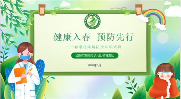 春日渐暖,万物生长,春天也是传染性疾病多发的季节。为切实保障全体师幼的身体健康与生命安全,有效预防春季传染病的发生,2026年3月23日,合肥市安庆路幼儿园教育集团迎松路分园开展教职工春季传染病防控知识培训与幼儿春季传染病健康教育活动。
