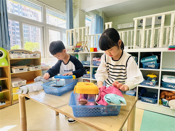 大班孩子们在老师的带领下,认真整理个人物品框,让物品摆放整洁有序;还走进园区角落,仔细清理花草丛中的垃圾。在亲身劳动中,幼儿不仅养成了整洁有序、爱护环境的良好习惯,更树立了责任意识,主动争做健康生活的小使者,用实际行动践行卫生健康理念。