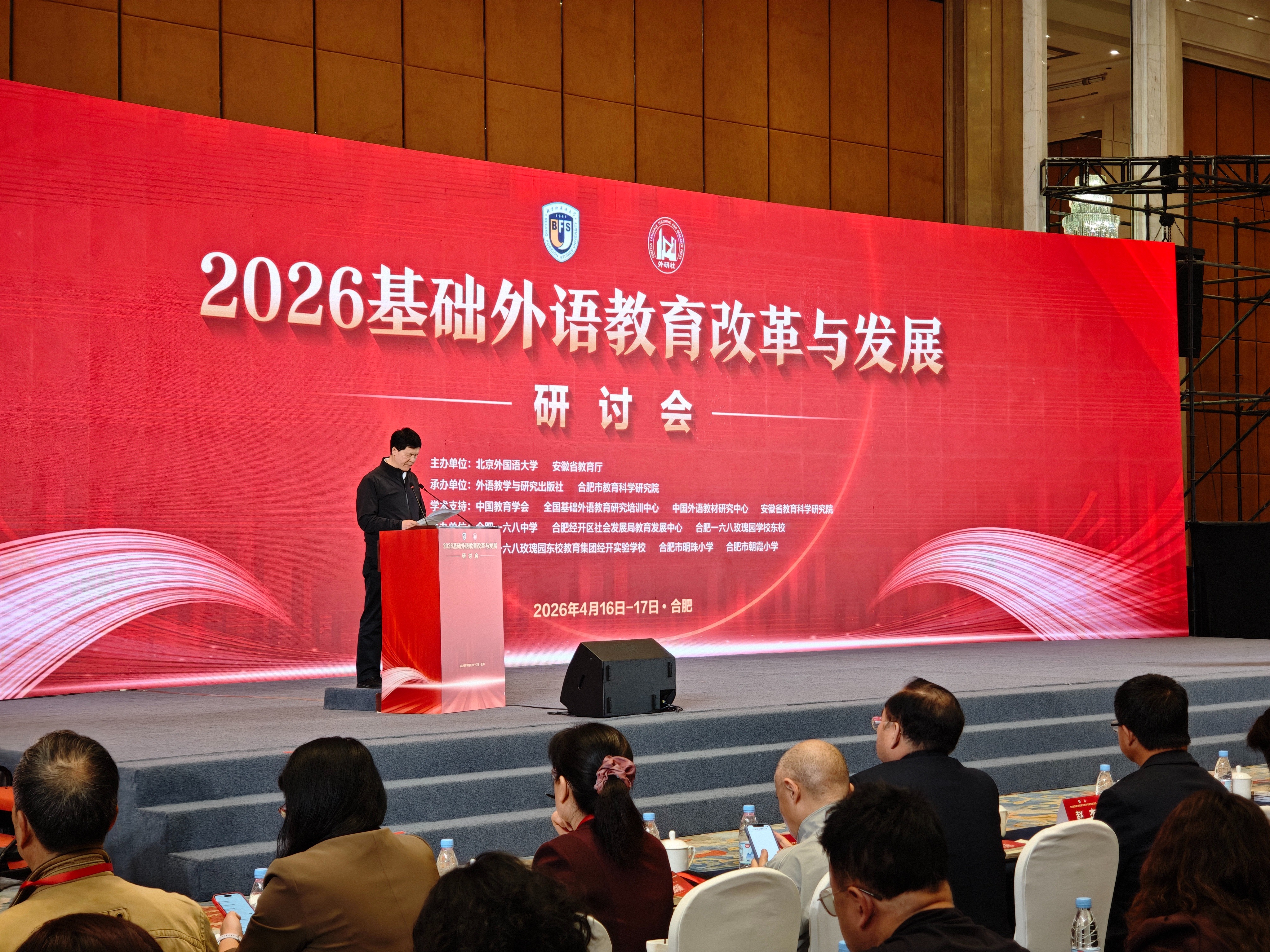 2026年4月16日, 2026基础外语教育改革与发展研讨会在合肥开幕,近2000位来自全国各地的外语教育专家学者、教育行政主管部门负责人、中小学英语教研员、校长及一线教师齐聚合肥,聚焦“数智赋能·教学创新——构建基础外语教育新生态”这一时代主题,共同探索数智技术如何深度融入基础外语教学。