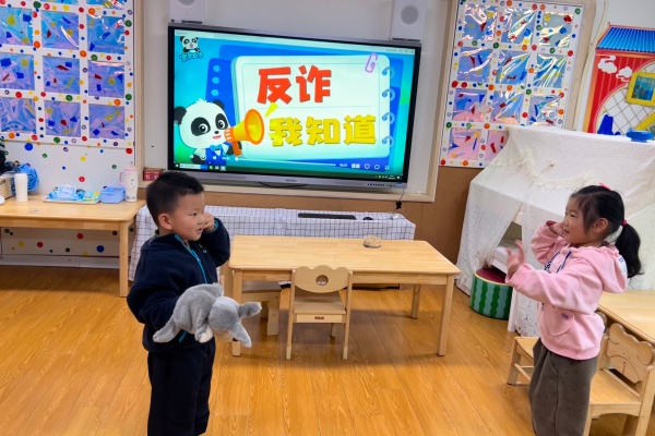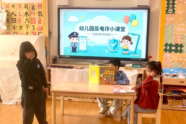 大班的《反诈情景小剧场》超精彩!孩子们扮演小朋友、老师、警察等角色,沉浸式演绎“陌生人要扫码领礼品”“陌生电话套近乎”等常见场景。在生动的表演中,大家明白了“不贪小便宜、不泄露信息、不随便跟陌生人走”的道理,还一起总结了应对诈骗的小方法~