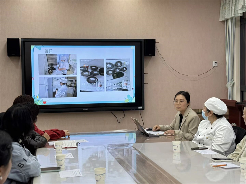 为让家长全面掌握膳食管理细节,各园食品安全员从食材采购的严格筛选、验收把关,到储存分类、加工操作,再到餐食留样的标准化流程,逐一讲解说明,以透明化管理消除家长疑虑。随后,同步播放食堂日常工作视频,完整呈现晨间验菜、菜品烹制、幼儿进餐及餐具消毒等全流程,让家长真切感受到食堂管理的规范与严谨。