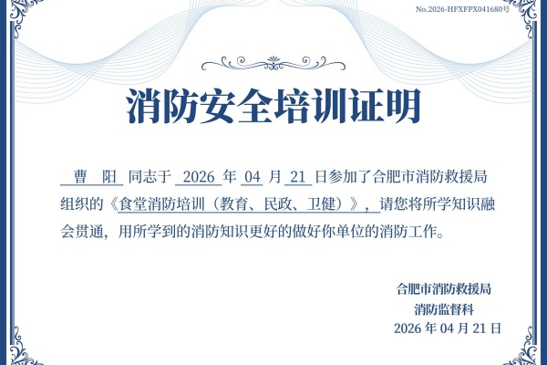 为切实加强食堂消防安全管理,提升食堂管理人员消防责任意识与应急处置能力,2026年4月21日下午,合肥市荣城幼儿园教育集团后勤负责人、四园办公室负责人及食堂管理员,共同参加了由合肥市消防救援局举办的食堂消防安全专项培训活动。