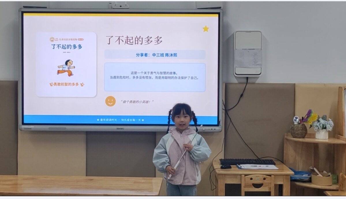 中班设立周三“故事小主播”,幼儿主动上台讲述绘本故事;同时鼓励亲子自制绘本,感受阅读与创作的乐趣。